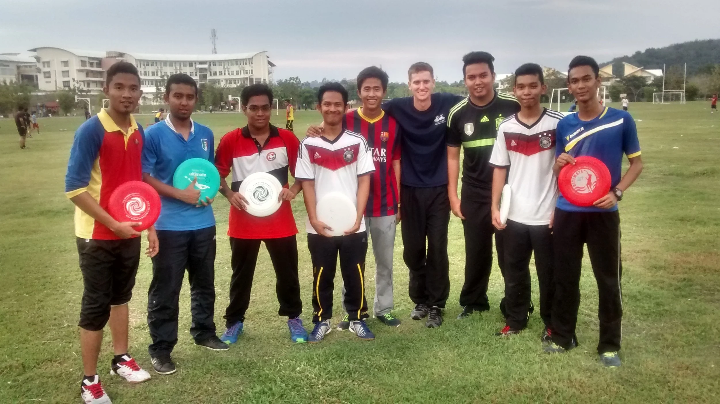 More than two hundred students heard the Ultimate sales pitch recently at PTSS in Pauh Putra, Perlis. For Adam, Weng Kit and Douglas it was a bit overwhelming but thank goodness, the students enjoyed the introduction … and not quite that many found their way to the field for developing some skills. By the end, those who stayed not only had a great time but are looking forward to taking part in the upcoming 2014 GSP-IKBN Jitra Ultimate Frisbee Fun Day on November 8th. Adam was able to invest focused time in a number of the guys with obvious potential – Thanks to En Hasnizam of Pusat Sukan for his warm welcome!